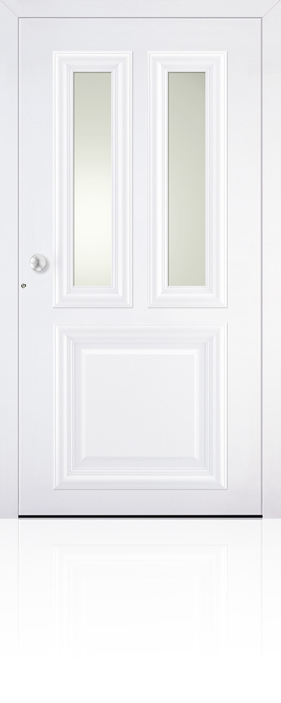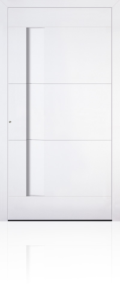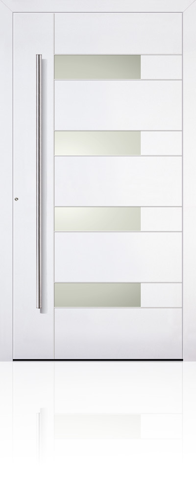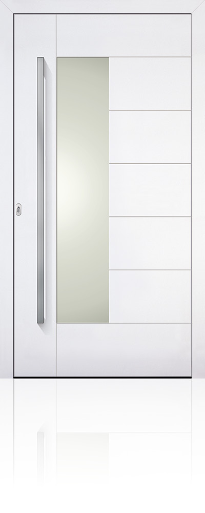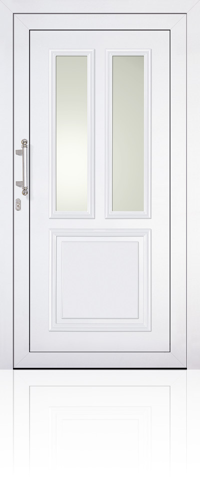 In puncto Sicherheit sind Sie bei unserem Premiumprodukt, der beidseitigen Aufsatzfüllung, bestens versorgt. Schon im Standard wird die innere und die äußere Scheibe in ESG Qualität gefertigt. Optionales Dreifach-Sicherheitsglas und RC2-Zertifizierung bieten zusätzlichen Schutz vor unerwünschten Besuchern. Charakteristisch für viele Hausfassaden sind breite Eingangsbereiche, die sich optimal mit mehrteiligen Haustüren oder Seitenteilverglasungen gestalten lassen. Unsere Designer sind sich hier einig: „Je großteiliger eine Haustür, desto ruhiger sollte das Füllungsdesign sein.“ Hierzu eignen sich besonders gut geschlossene Haustürfüllungen, entweder glatt und betont mit einem Haustürgriff, oder leicht akzentuiert mit feinen Nuten. In beiden Fällen sorgt die beidseitige Aufsatzfüllung für eine puristische Eleganz mit hervorragender Wärmedämmung. Verglaste Seitenteile lassen Tageslicht und Helligkeit in Ihren Flur. Warten Sie nicht länger!