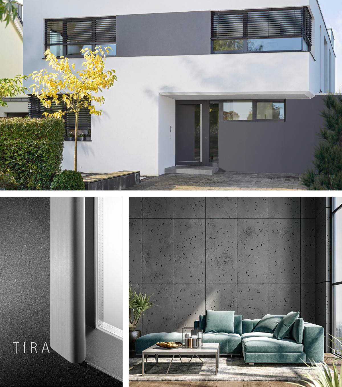 Farben und Oberflächen verleihen Ihrem Haus Individualität und Persönlichkeit. Die Wirkung von Farben oder Designfolien wird entscheidend von der Struktur der Oberfläche beeinflusst. Mikropartikel aus Metall verleihen der Pulveroberfläche eine elegant schimmernde Optik. Robuste Feinstruktur-Oberflächen erfüllen höchste Ansprüche an Kratz- und Schlagfestigkeit. Designfolien kreieren Oberflächen, die in Struktur, Optik und Haptik furnierten Holzoberflächen sehr ähnlich sind. Als Gestaltungselement für Griffe, Intarsien und Applikationen in Kombination mit unseren Designfolien veredelt die Farbe Schwarz den Gesamteindruck.