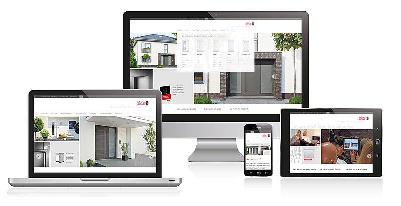 Design ist für adeco ein wichtiges Thema. Nicht nur in Punkto Türfüllungen, sondern auch beim Design der Website. Um den Zugriff auf unsere Website für Smartphones und Tablets wie iPhone und iPad zu optimieren, haben wir die Website umgestaltet. Das Responsive Webdesign (RWD) der neuen Site nimmt auf eine Vielzahl verschiedener Endgeräte Rücksicht. Beim Haustürkonfigurator folgt die Anpassung ins Responsive Webdesign Ende dieses Jahres.